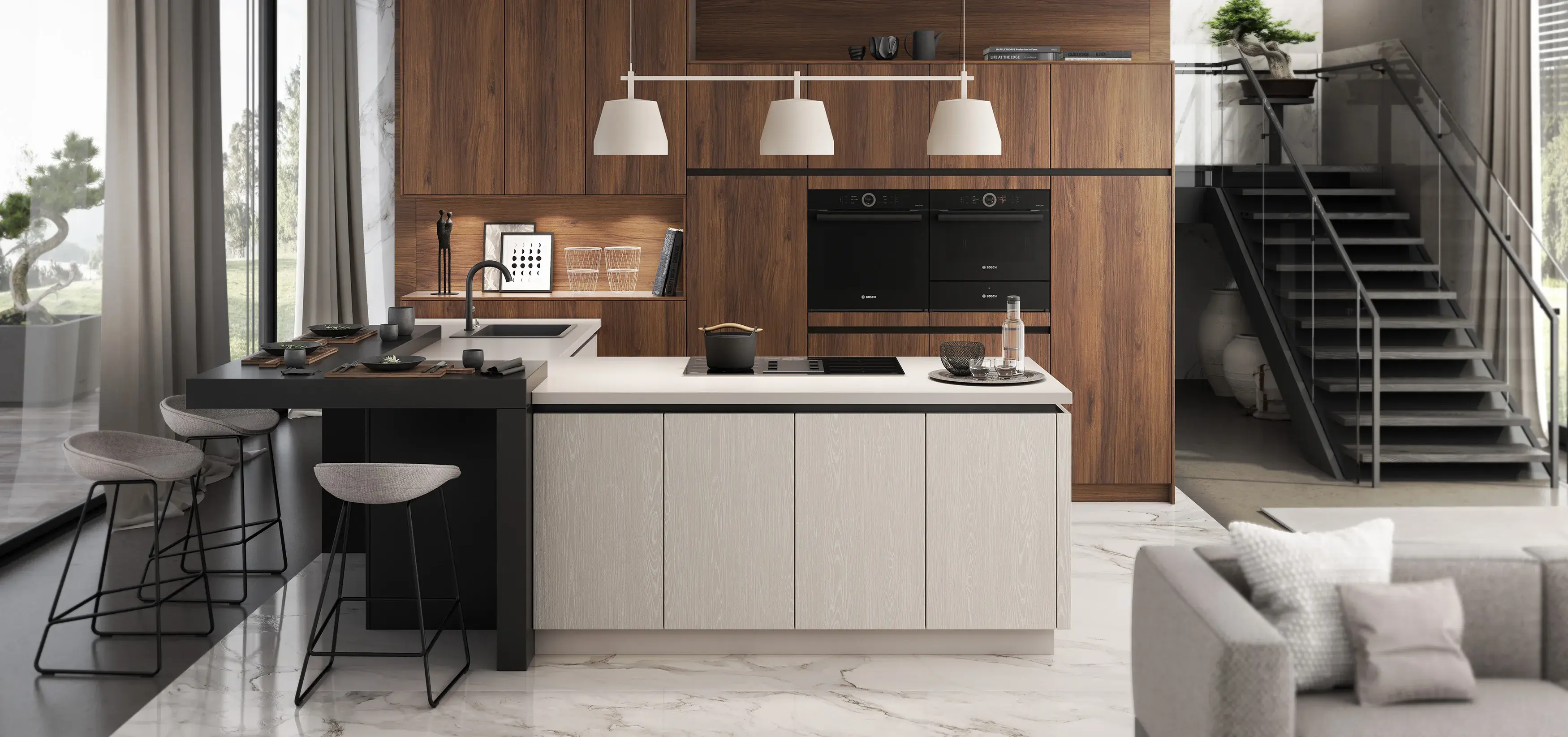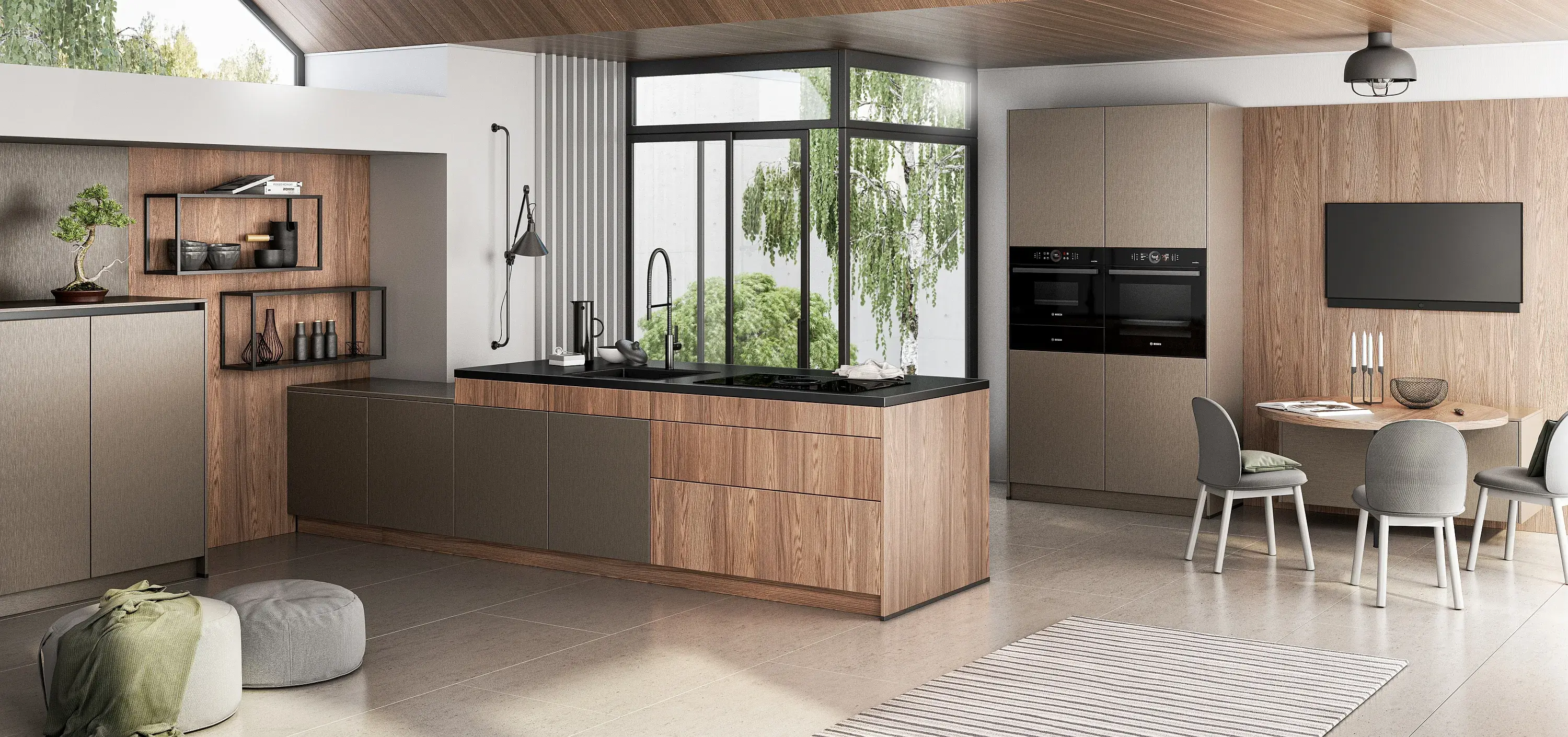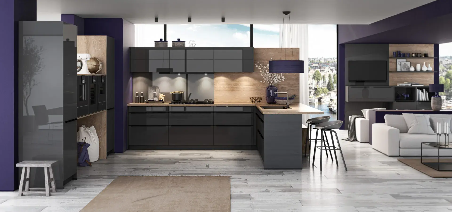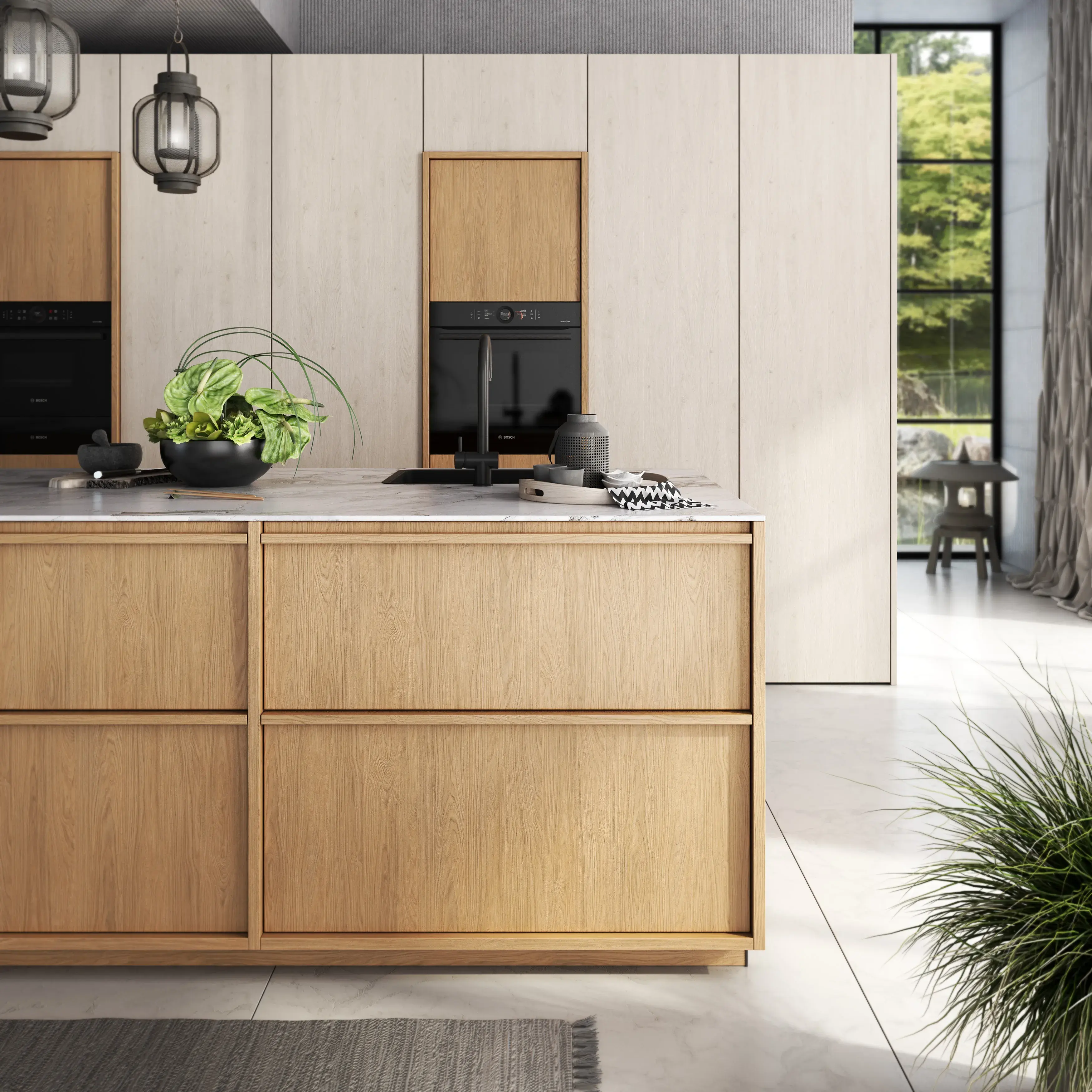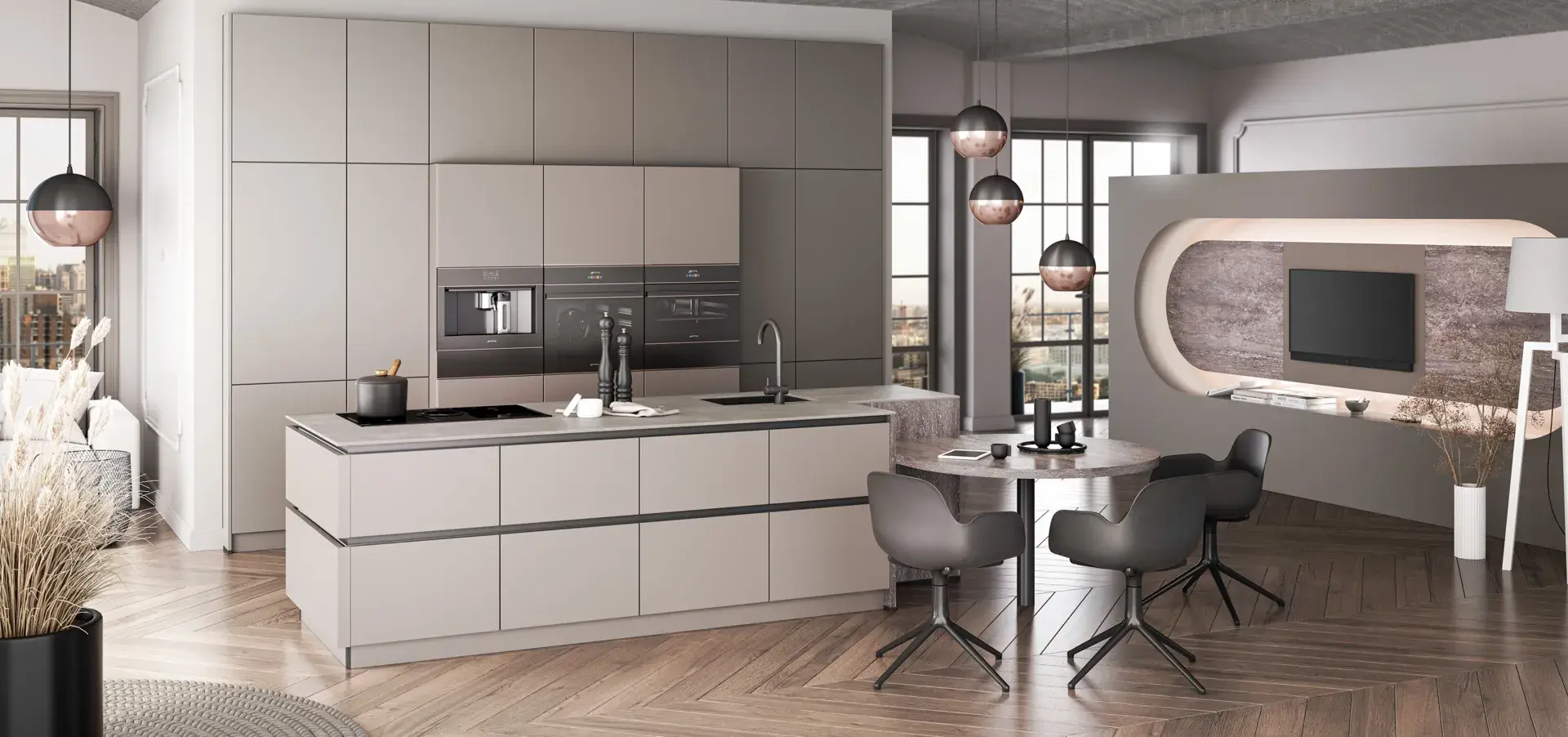 Grifflos-Serie und Hochschränke für moderne Küchen