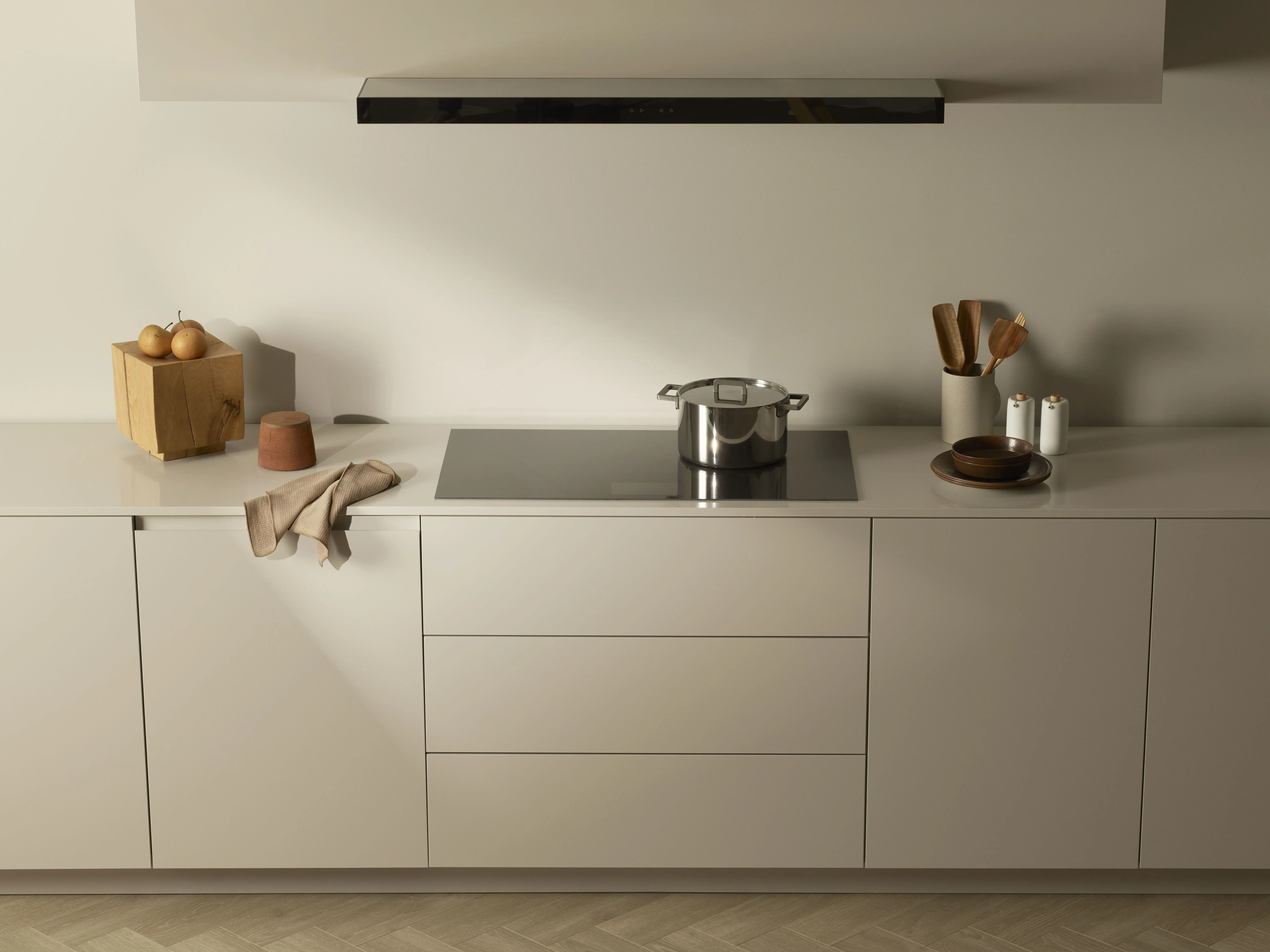 Die Abzugshauben von V-ZUG sind leistungsstark und intelligent. Für einen sorgsamen Umgang mit der Energie wird die Abzugsleistung durch Automatikfunktionen gesteuert. Obwohl sie besonders leistungsstark sind, bleiben die Abzüge selbst auf höchster Stufe erfreulich geräuscharm.