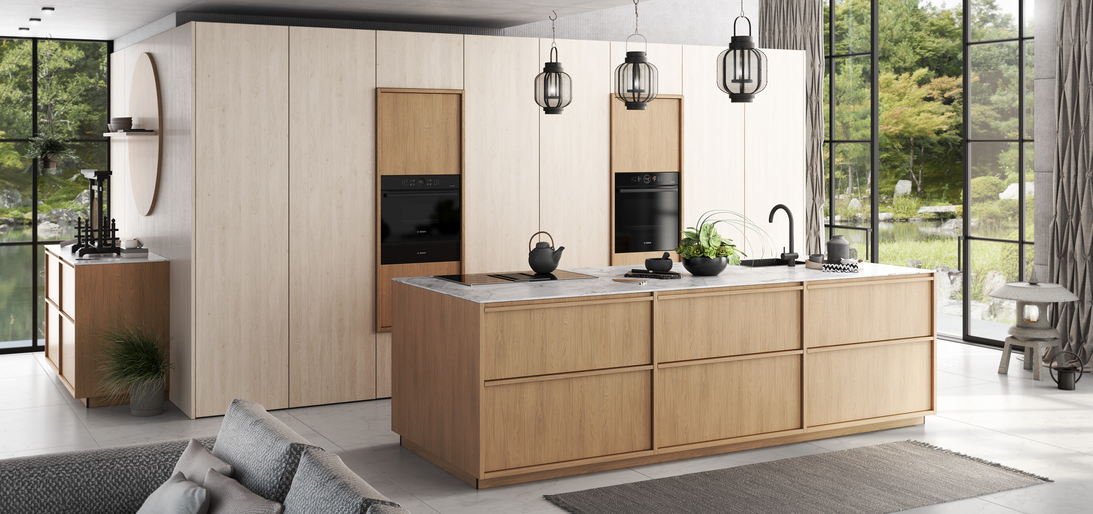 Die Ordnung genießen: Dank ergonomisch durchdachter Stauraumlösungen sorgen Schubladen, Auszüge oder Einsätze für aufgeräumte Arbeitsplatten. Der harmonische Gesamteindruck bringt Ruhe und Gelassenheit in den Küchenalltag.