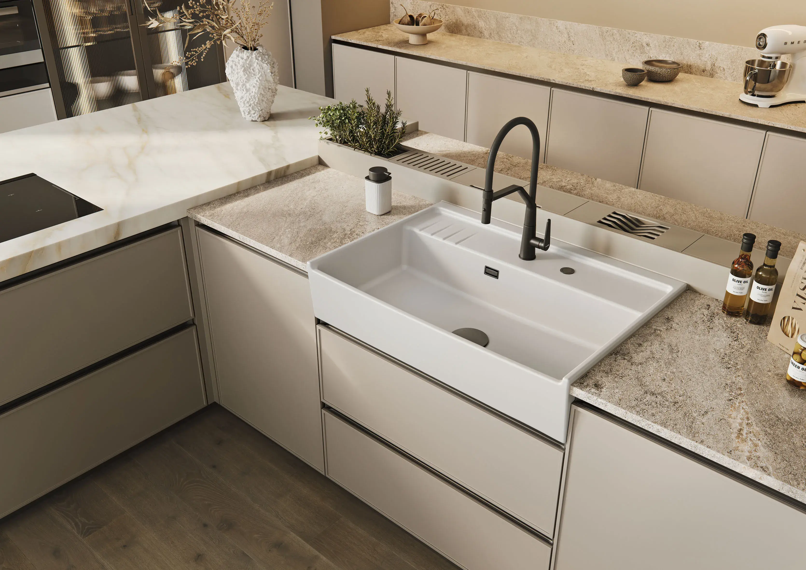 Mit großzügigen Beckenabmessungen von 56 cm x 41,5 cm verlangt die KENTRO 60 keine Kompromisse bei der Vor- und Zubereitung und dem großen Abwasch. Nachhaltig aus den Rohstoffen der Region gefertigt, zuverlässig durch die Eigenschaften des Feinsteinzeugs und gestaltet nach den Bedürfnissen selbstbewusster Küchennutzer: